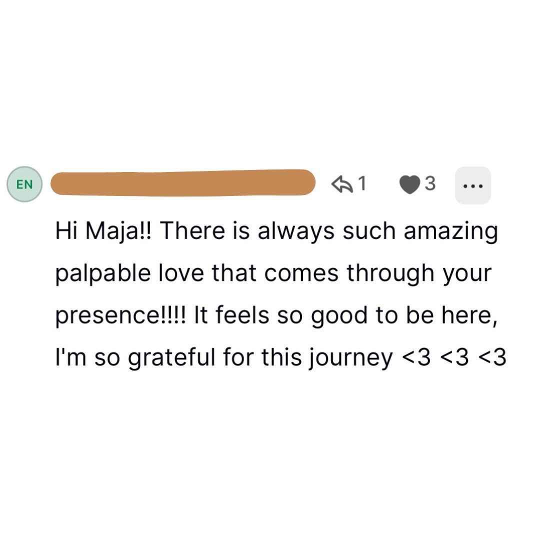 You’ve truly been a blessing in my life. Your guidance, your courage to share your mission, and your ability to create a container where we can all awaken to our fullest potential is something I will forever cherish and honour deeply.